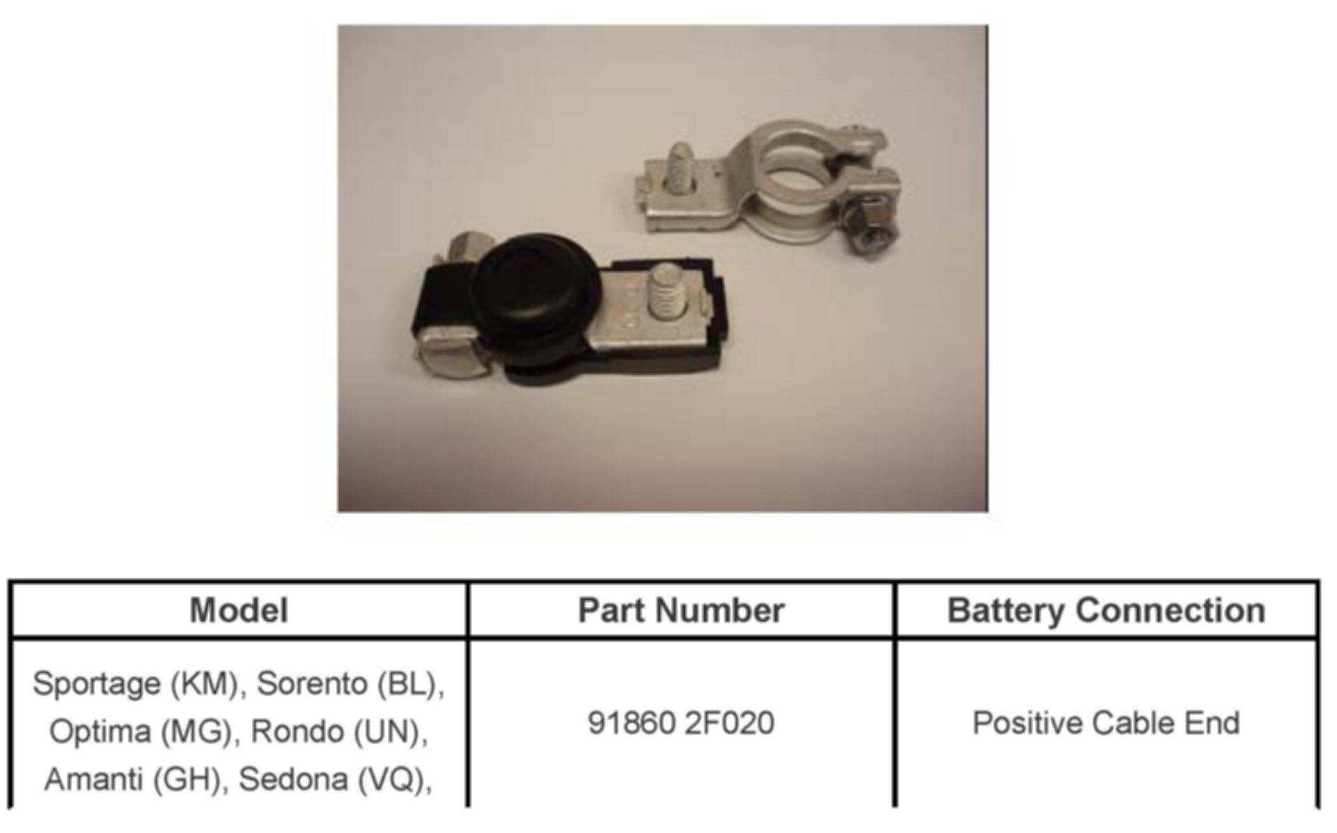 Subject Battery Cable Terminal Service - All Listed Models