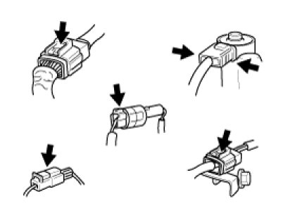 2. Inspect connector connection, and check terminal for poor connections, loose wires, bent, broken or corroded pins, and then verify that the connectors are always securely fastened.