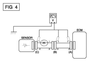 A. With each connector still connected, measure the voltage between the chassis ground and terminal 1 of each connectors (A), (B) and (C) as shown in [FIG. 4].