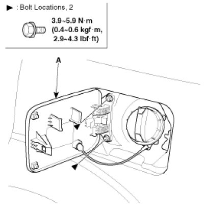Loosen the bolts, then remove the fuel filler door (A).