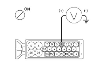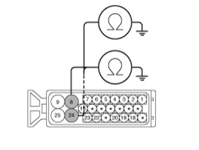 2. Check for continuity between terminals 8, 24 of the ABS control module harness side connector and ground point.