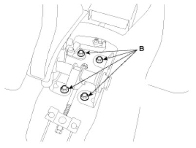 4. Remove the parking brake lever assembly (A) with loosening the bolts (B).