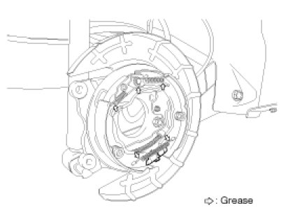 5. Apply a coating of the specified grease to each sliding parts of parking brake as shown.