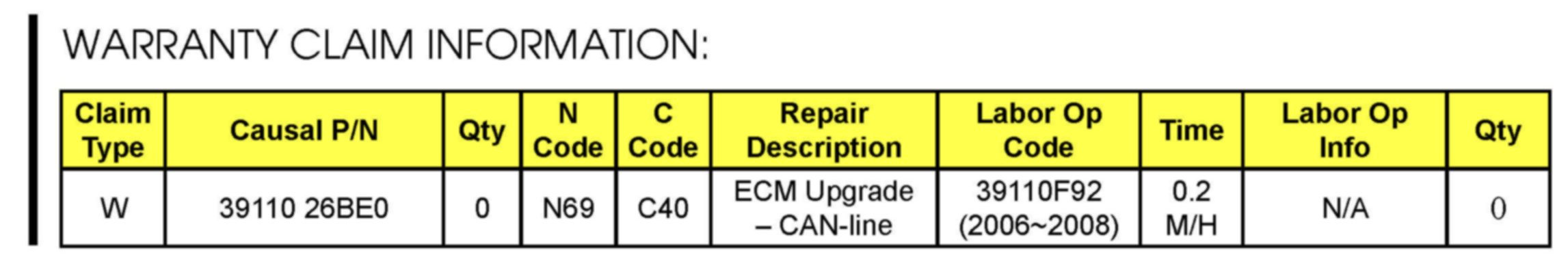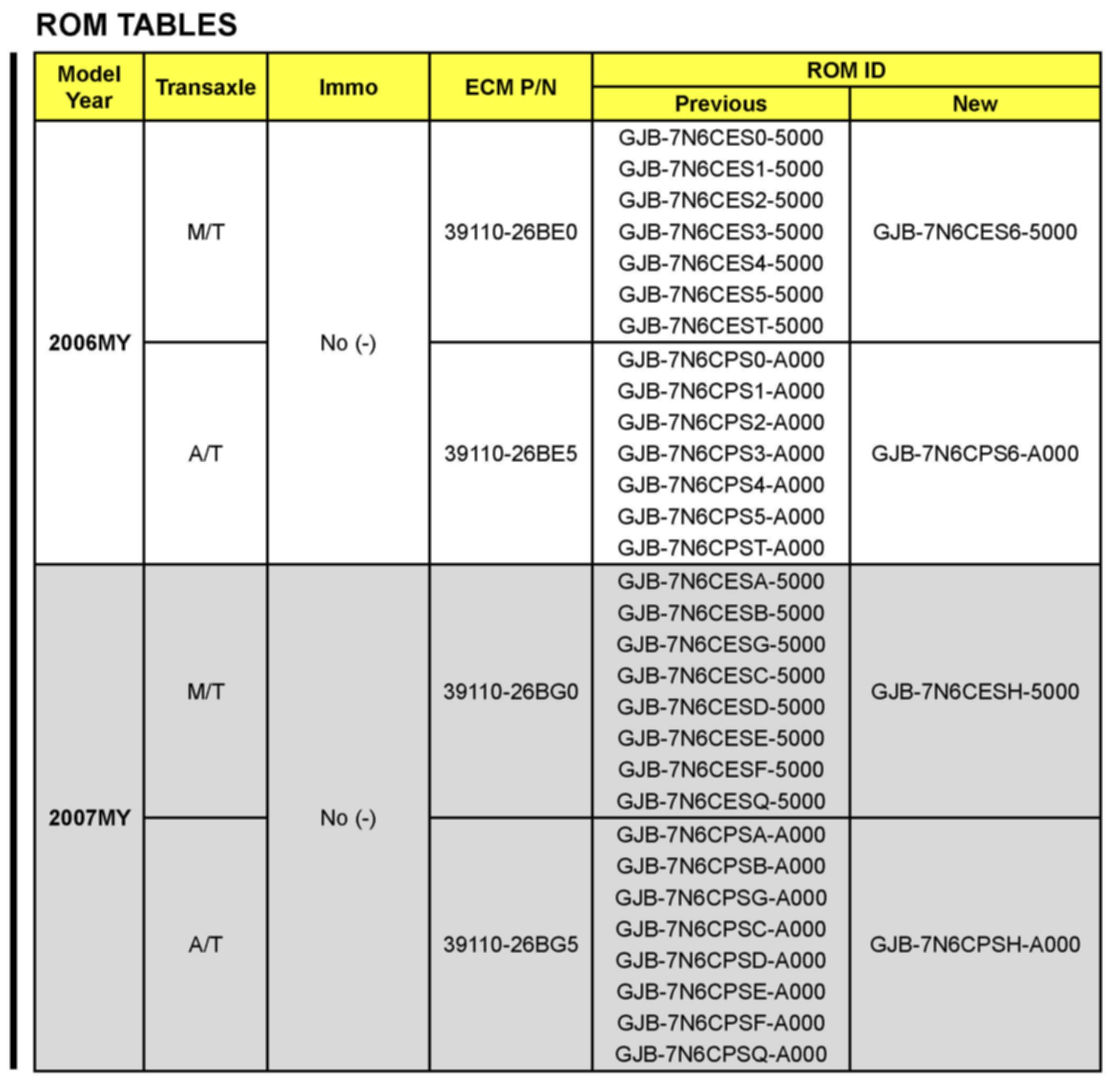 To verify the vehicle is affected, be sure to check the Calibration Identification of the vehicle's ECM's ROM ID and reference the Information Table as necessary.