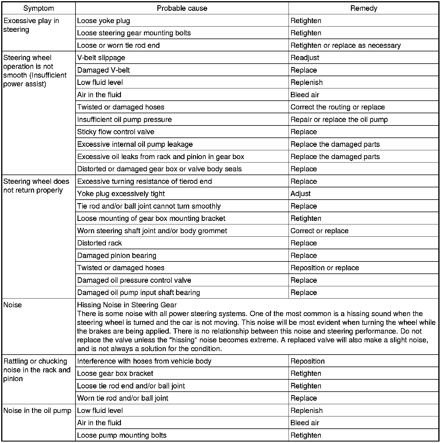 A slight "grinding noise" may be heard immediately after the engine is started in extremely cold weather conditions (below - 20°C). This is due to power steering fluid characteristics in extreme cold conditions and is not an indication of a malfunction.