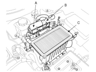 (3) Remove the intake air hose and air cleaner upper cover(C).