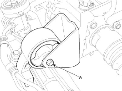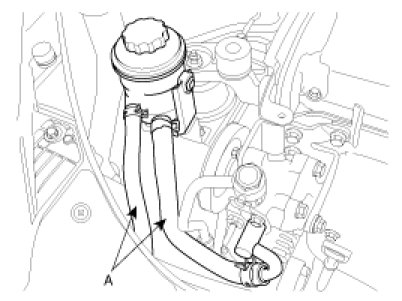 6. Remove the power steering oil hose(A) and drain the power steering oil.