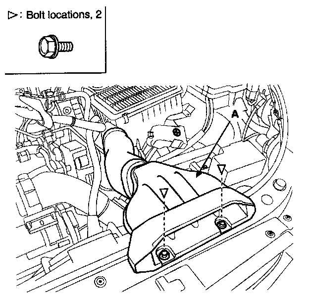 HOOD LATCH REPLACEMENT1. Loosen the air duct (A) mounting bolts.