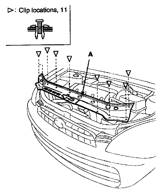 4. Detach the clips, then remove the hood latch cover(A).