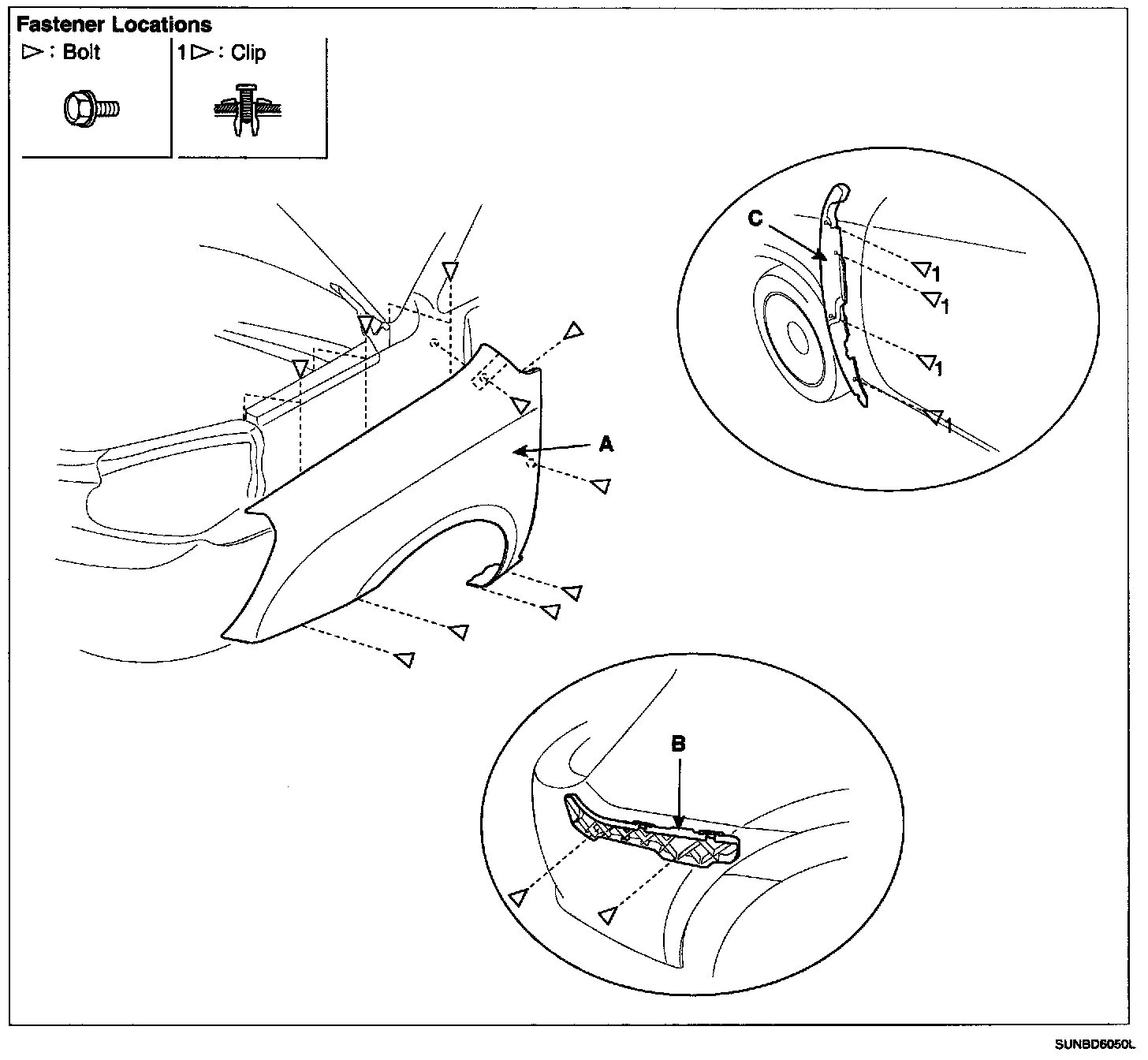 2. After loosening the fender mounting bolts, then remove the fender (A).