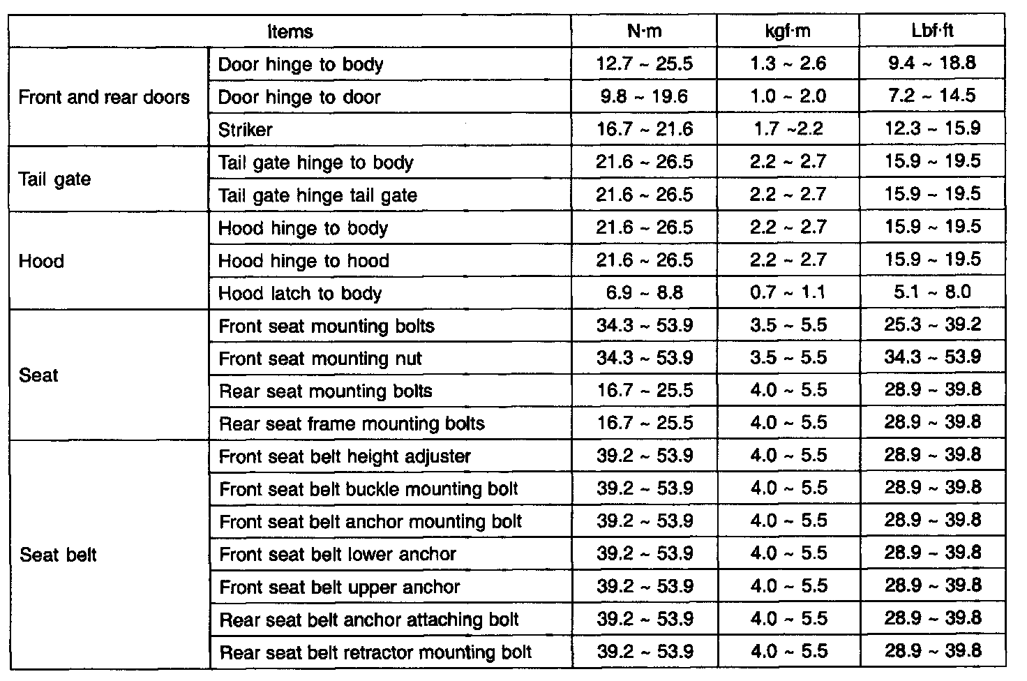 Tightening Torque: