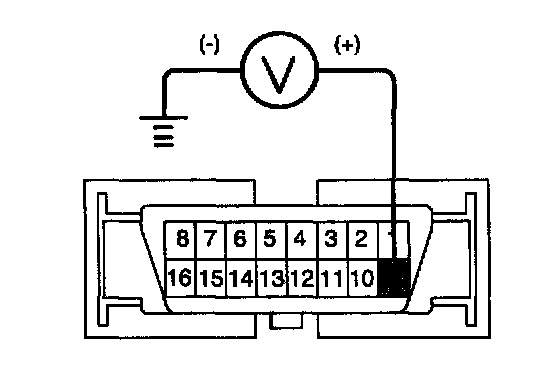 Measure the voltage between terminal 9 of the data link connector and body ground.