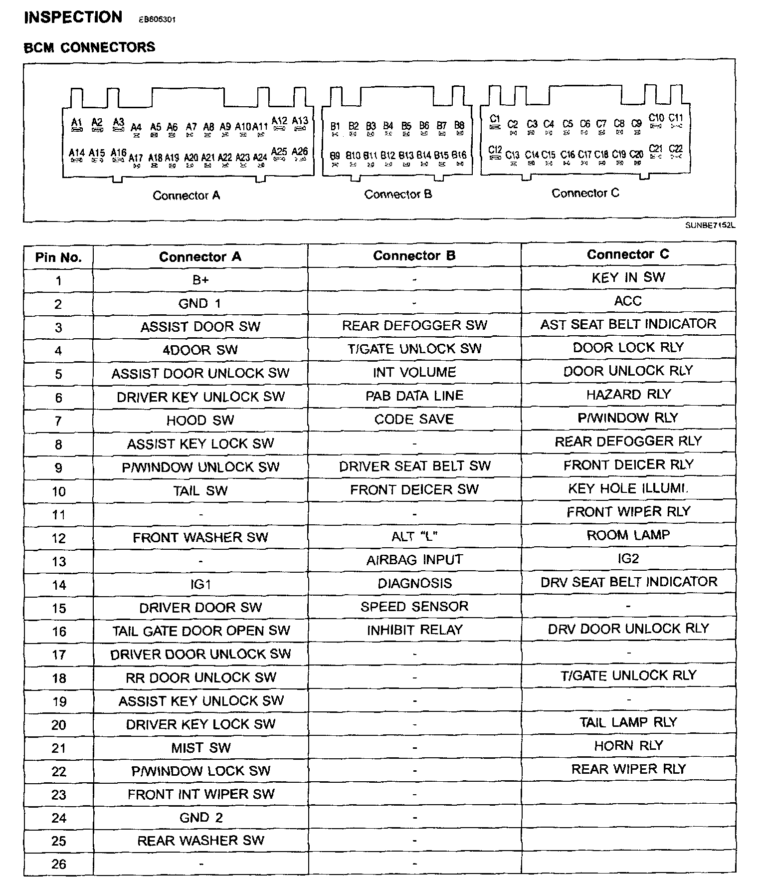 BCM Connectors Inspection: