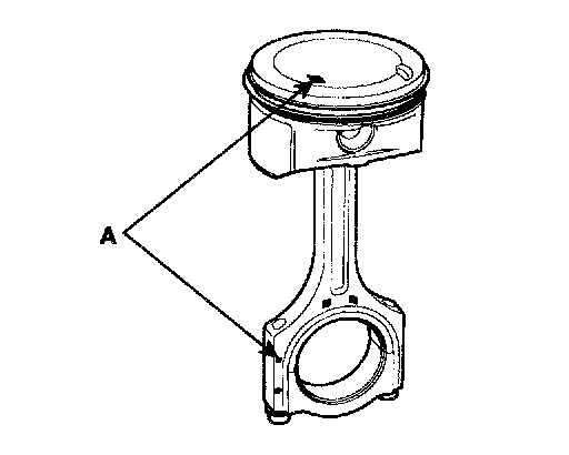 2) The piston front mark and the connecting rod front mark must face the timing belt side of the engine.