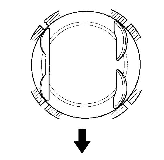 3) Position the piston rings so that the ring ends are as shown.