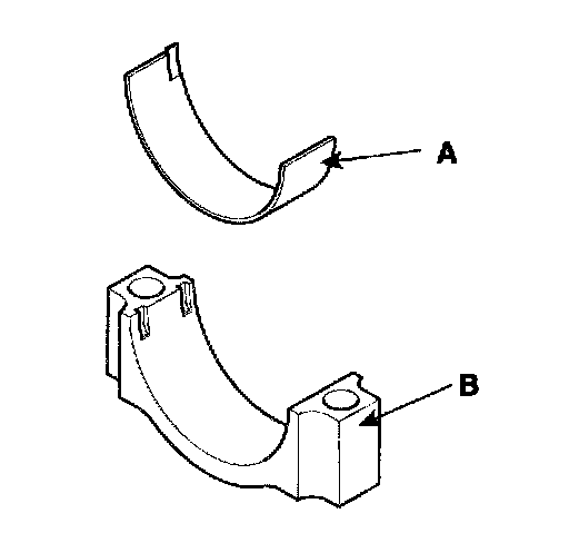 2) Install the bearings(A) in the connecting rod and connecting rod cap(B).