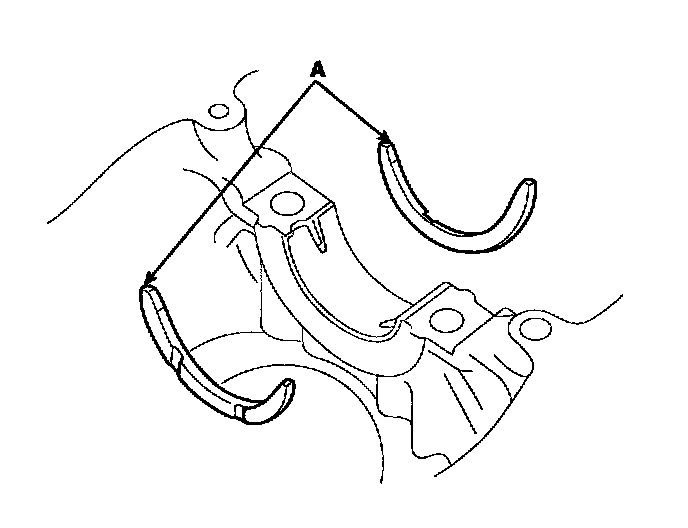Install the 2 thrust bearings(A) under the No.3 journal position of the cylinder block with the oil grooves facing outward.