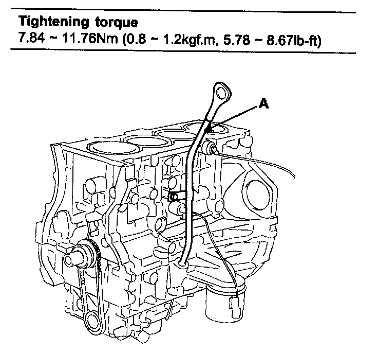 3) Install the oil level gauge assembly(A) with the bolt.
