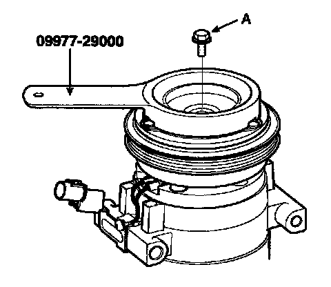 DISASSEMBLY1. Remove the center bolt (A) while holding the disc & hub assembly with a commercially available disc & hub assembly bolt remover; Special tool number 09977 - 29000.