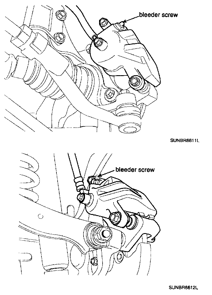 5. Pump the brake pedal several times, and then loosen the bleeder screw until fluid starts to run out without bubbles. Then close the bleeder screw.