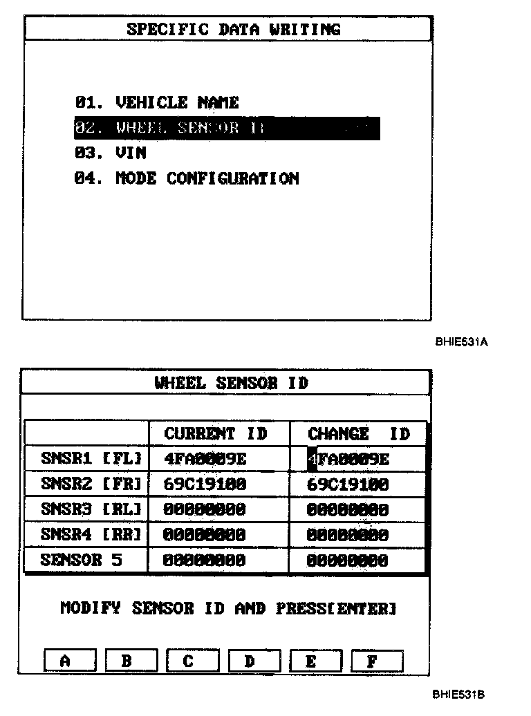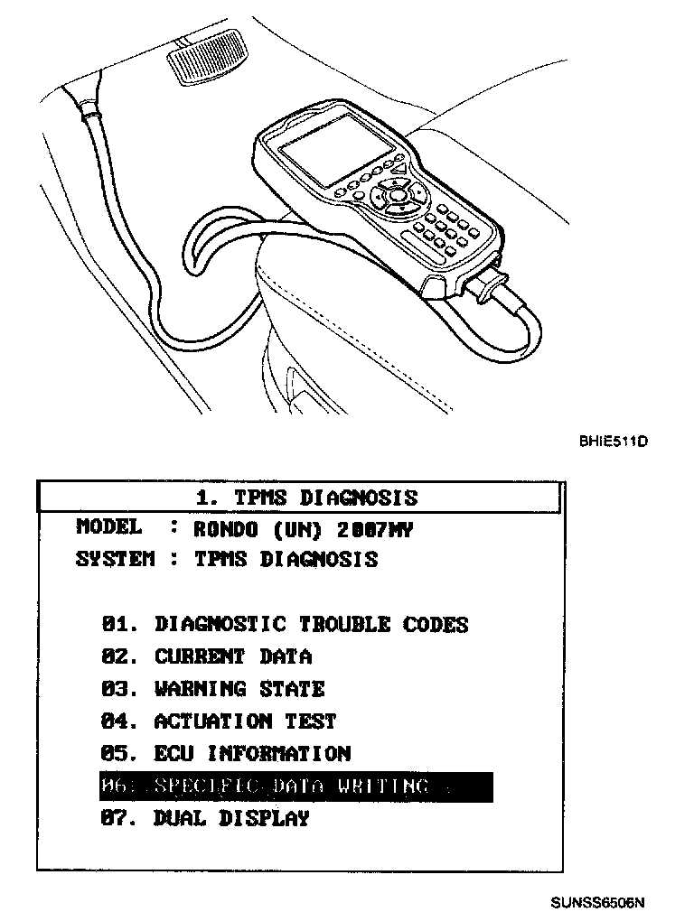 7. Read sensor's ids with the 'TPMS exciter'. (Refer to 'SENSOR INITIATING PROCEDURE')