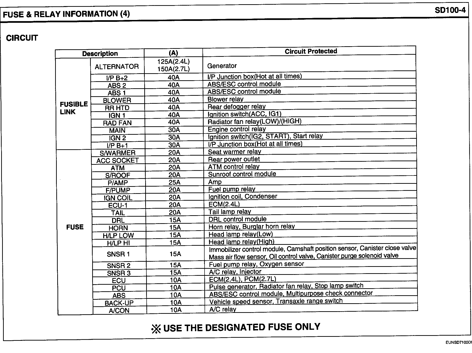 E/R Junction Box Circuit Details: