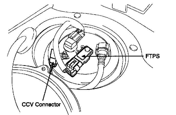 The evaporative emission control system prevents hydrocarbon vapors from escaping from the fuel tank into the atmosphere where they could form photochemical smog. Gasoline vapors are collected in the charcoal canister. The Fuel Tank Pressure Sensor (FTPS) is installed on fuel pump assembly and is an integral part of the evaporative monitoring system The ECM monitors the FTPS signal to detect vacuum decay and excess vacuum. The FTPS measures the difference between the air pressure inside the fuel tank and atmospheric air pressure to check the purge control solenoid valve operation and for leak detection in the evaporative emission control system by monitoring pressure and vacuum levels in the fuel tank during the purge control solenoid valve operating cycles.