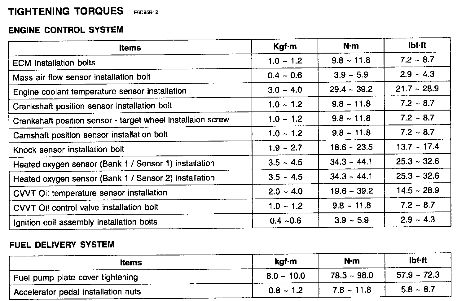 Tightening Torques: