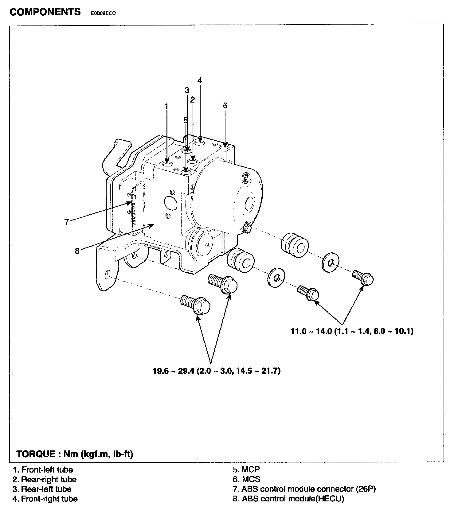 2. Tighten the HECU mounting bolts and nuts to the specified torque.