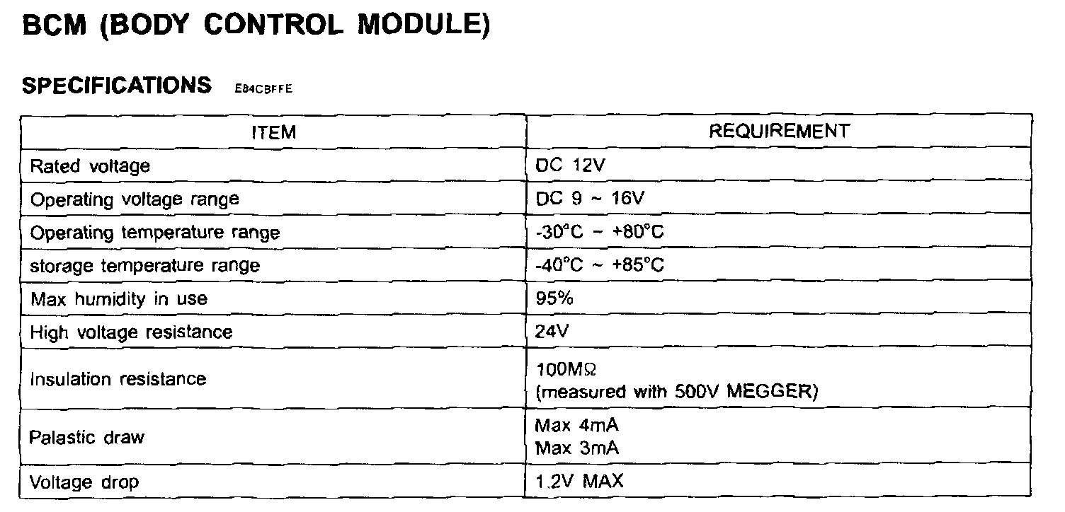 BCM (Body Control Module) - Specifications: