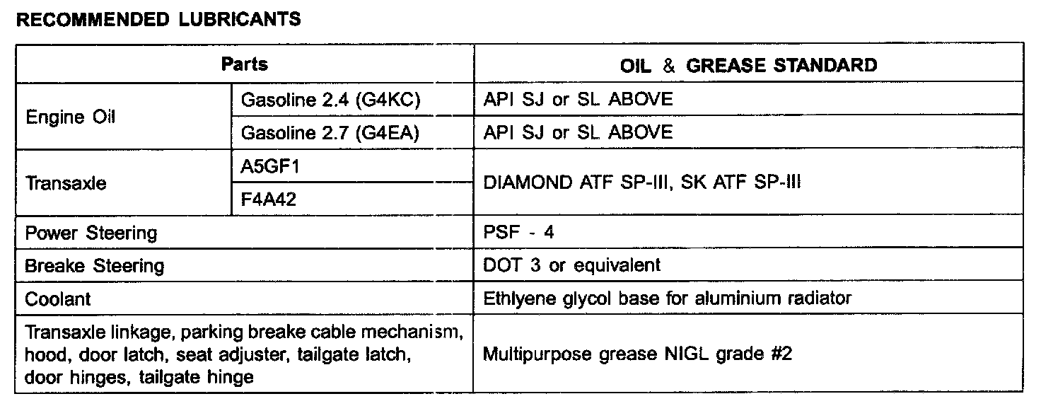 Recommended Lubricants and Capacities