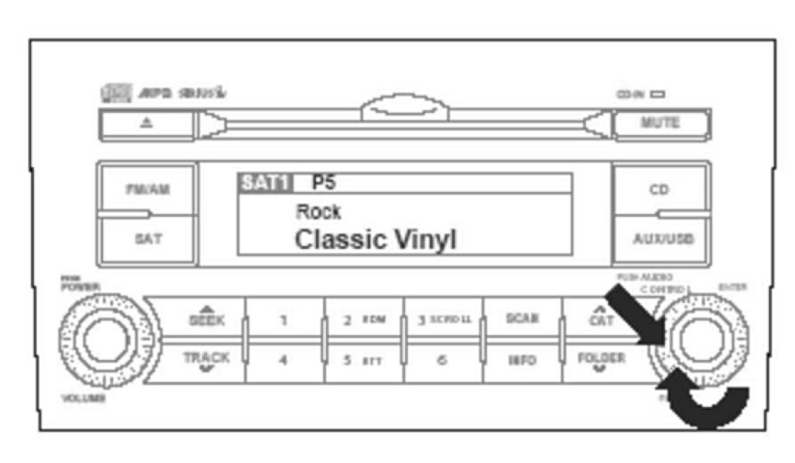 1. While in Sirius (SAT) mode, rotate the TUNE/ENTER knob to select a channel, then press the TUNE/ENTER knob to confirm the selection.