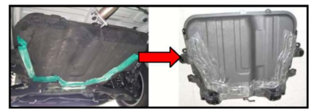 4. Remove the four (4) 10 mm fuel tank heat protector bolts and the remove the fuel tank heat protector (D) as shown in the photo.