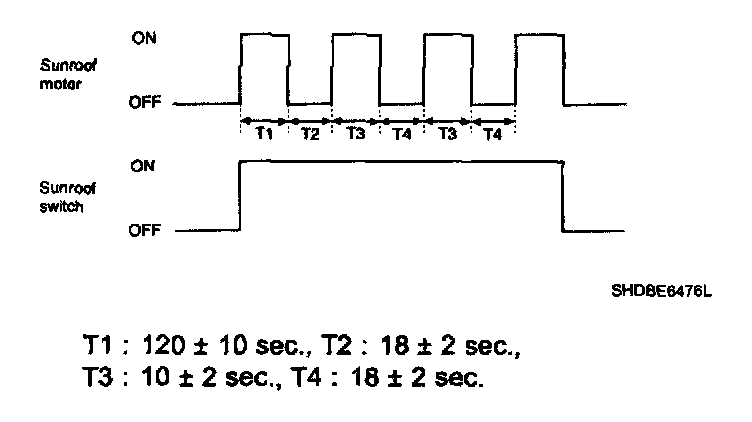 In order to protect the overheated sunroof motor by continuous motor operation, the sunroof ECU controls the Run-time and Cool-time of motor as followings:
