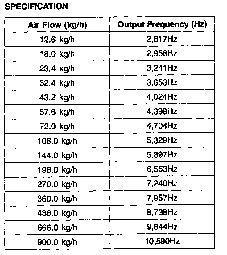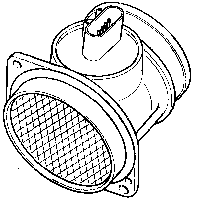 Mass Air Flow Sensor (MAFS) is a hot-film type sensor and is located in between the air cleaner and the throttle body. It consists of a tube, a sensor assembly and honey- comb cell and detects intake air quantity flowing into the intake manifold. Air flows from the air cleaner assembly through the honeycomb cell and over the hot film element. At this time, heat transfer is generated by convection and this sensor loses its energy. This sensor detects the mass air flow by using the energy loss and transfers the information to the PCM by frequency. The PCM calculates fuel quantity and ignition timing.