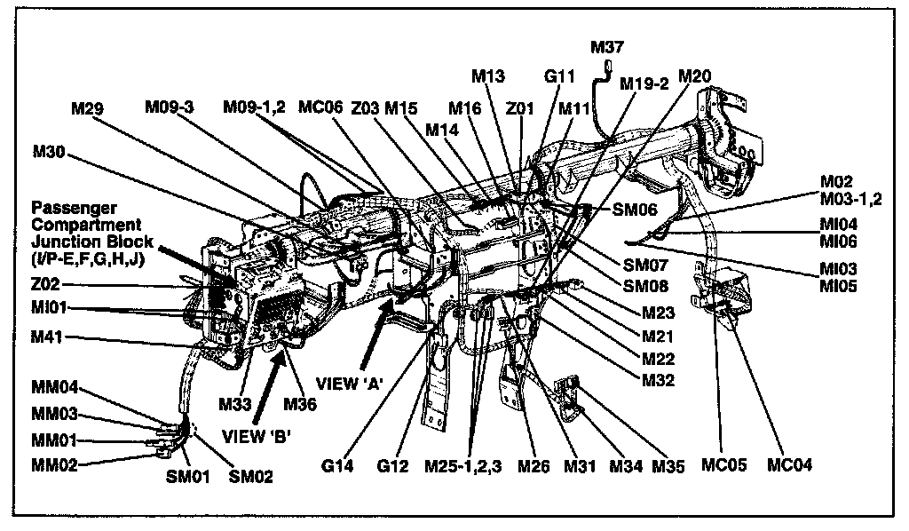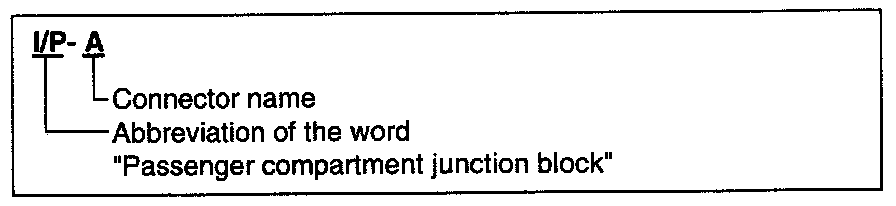 A junction block identification symbol consists of a wiring harness location classification symbol corresponding to a wiring harness location and number corresponding to the connector in the junction block.
