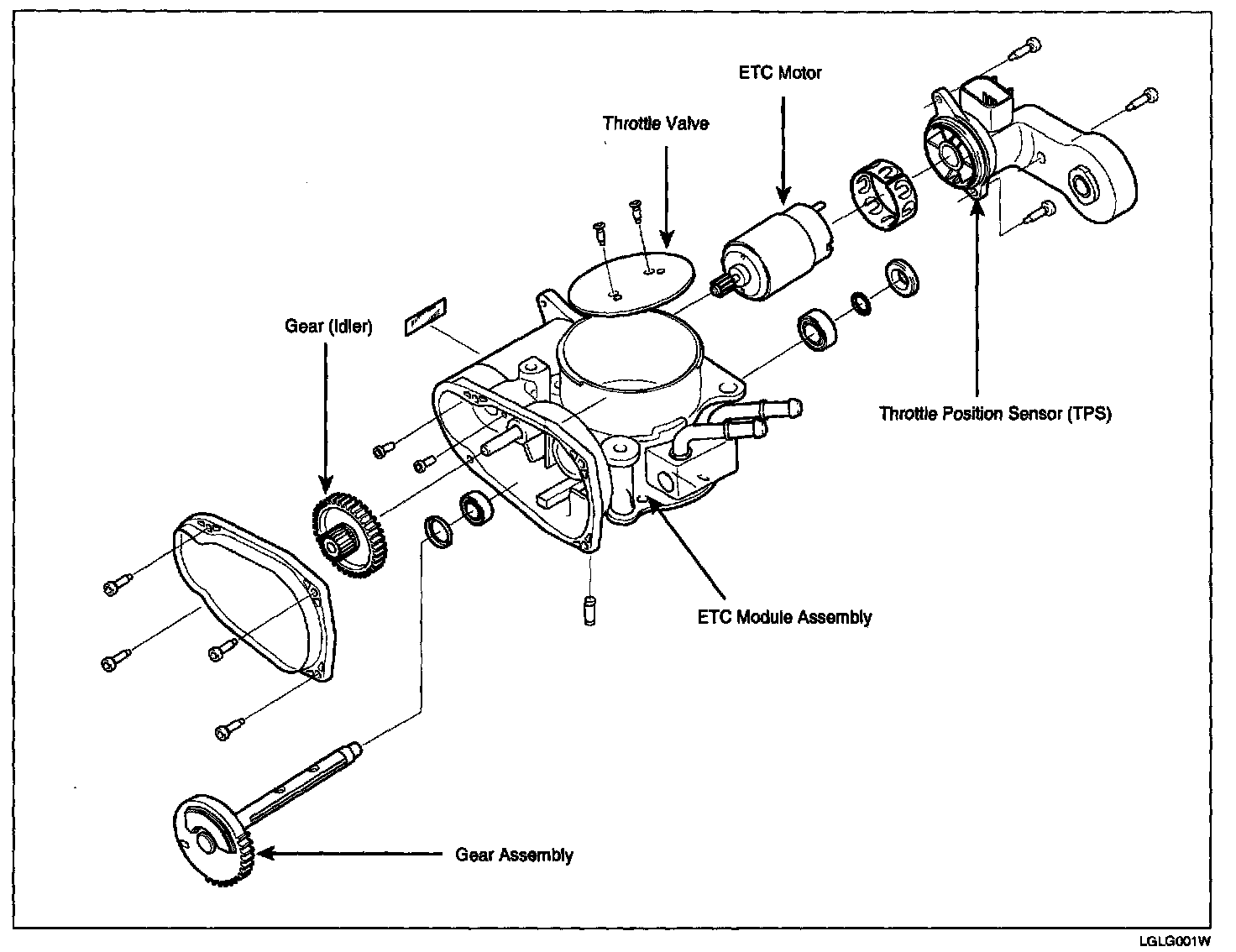 ETC (Electronic Throttle Control) system is electronically controlled throttle device which controls the throttle valve. It consists of ETC motor, throttle body and throttle position sensor (TPS). A mechanical throttle control system receives a driver's intention via a wire cable between the accelerator and the throttle valve, while this ETC system does the signal from the Accelerator Position Sensor (APS) installed on the accelerator pedal. After the PCM receives the APS signal and calculates the throttle opening angle, it activates the throttle valve by using the ETC motor. Additionally, it can materialize cruise control function without any special devices.