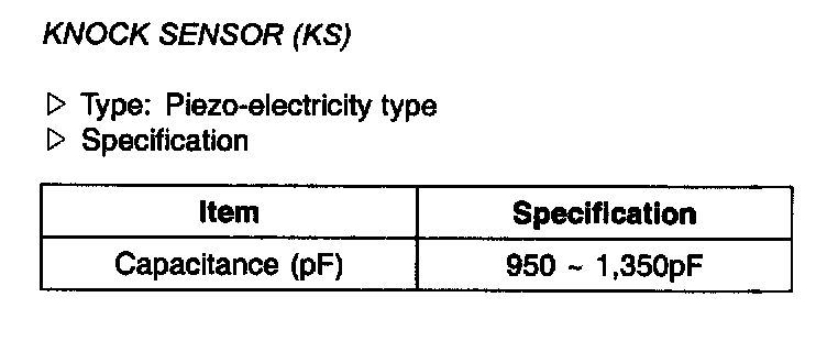 Knock Sensor (KS) - Specification: