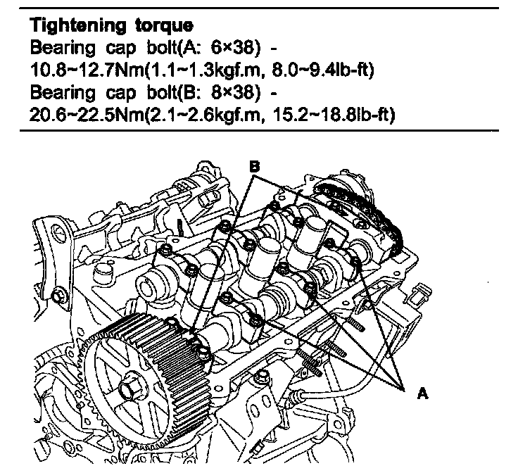 Camshaft sprocket bolt 88.3 - 107.9 Nm (9.0 - 11.0 kgf.m, 65.1 - 79.6 lb-ft)