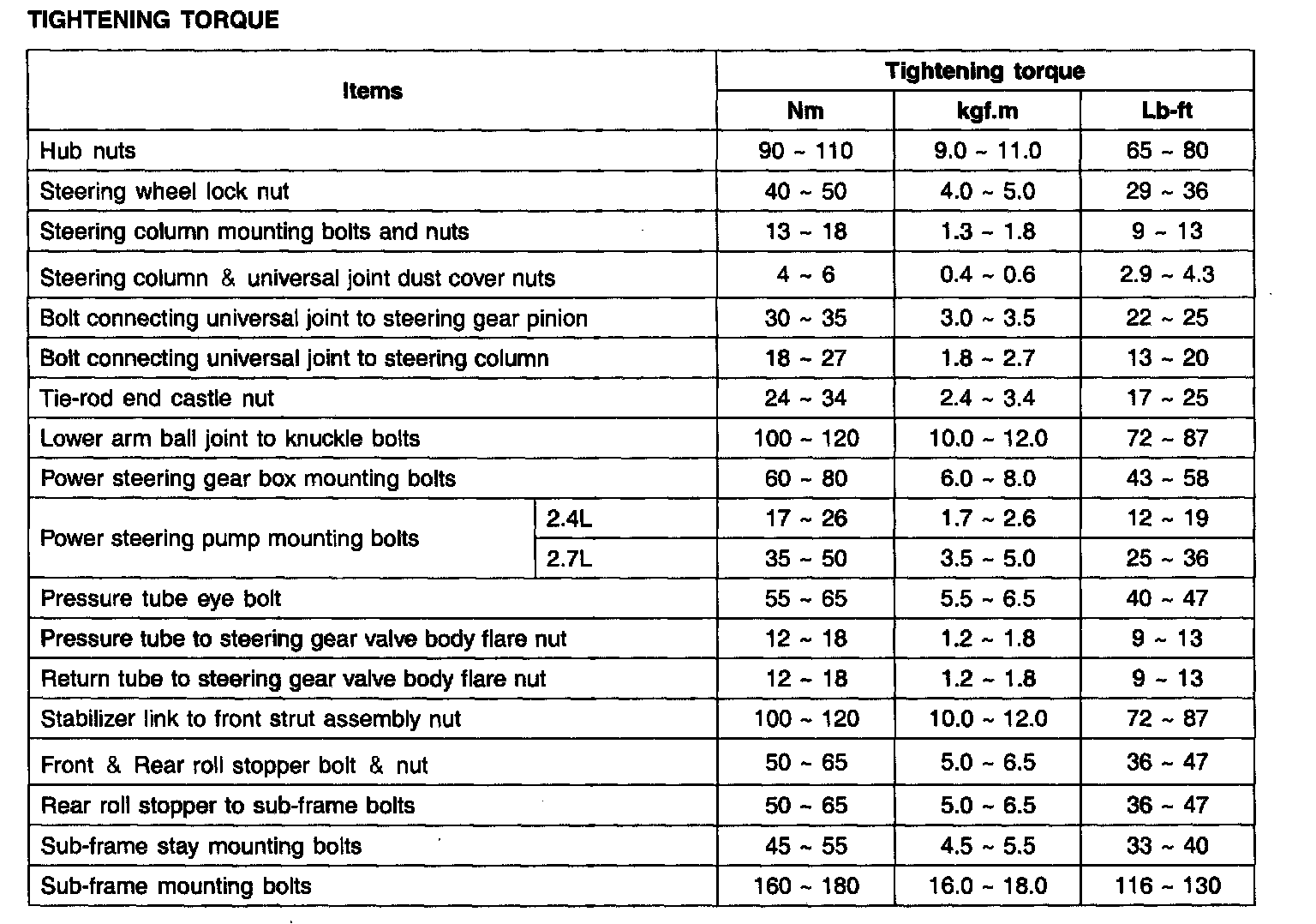 TIGHTENING TORQUE