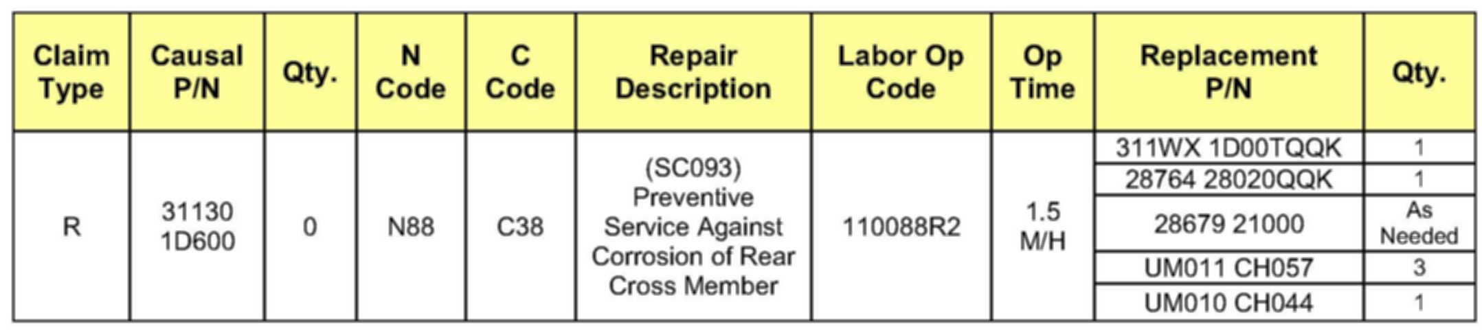 SUBJECT: PREVENTIVE SERVICE AGAINST CORROSION OF REAR CROSS MEMBER [SC093]