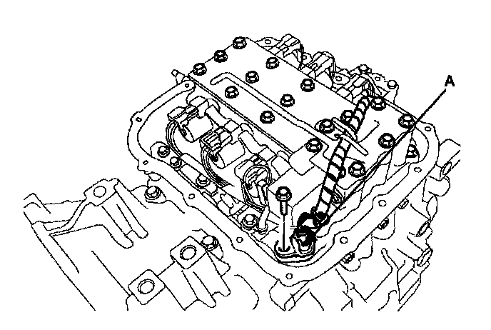 6. Disconnect the oil temperature sensor connector and remove the sensor(A) from the valve body.