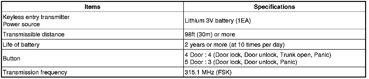Keyless Entry: Specifications