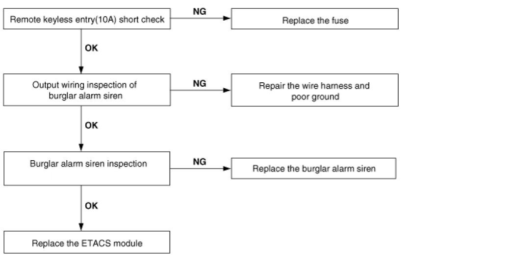 7. Central door lock function works, but keyless entry system does not work.