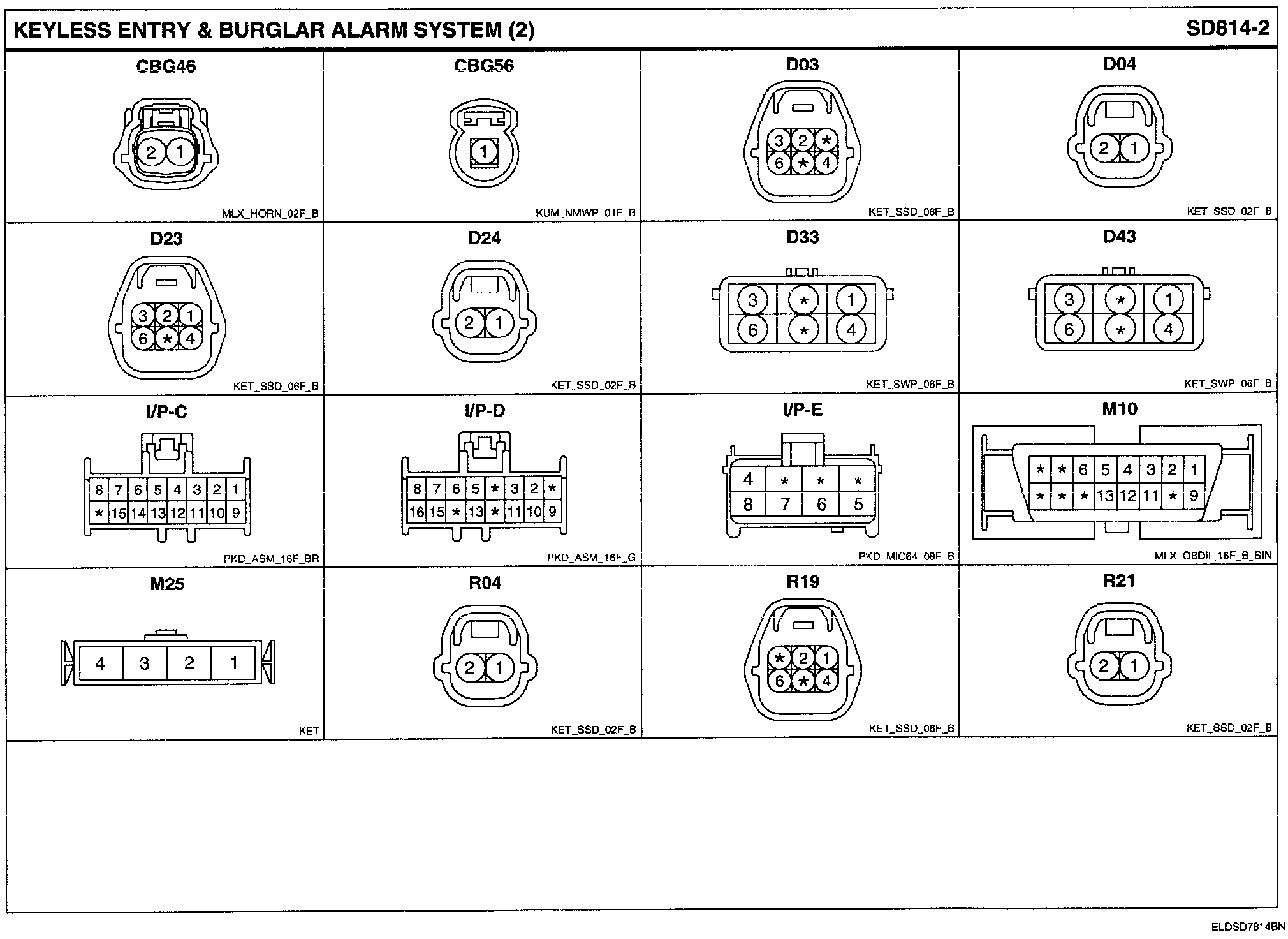 Keyless Entry & Burglar Alarm System Connector Pin Outs: