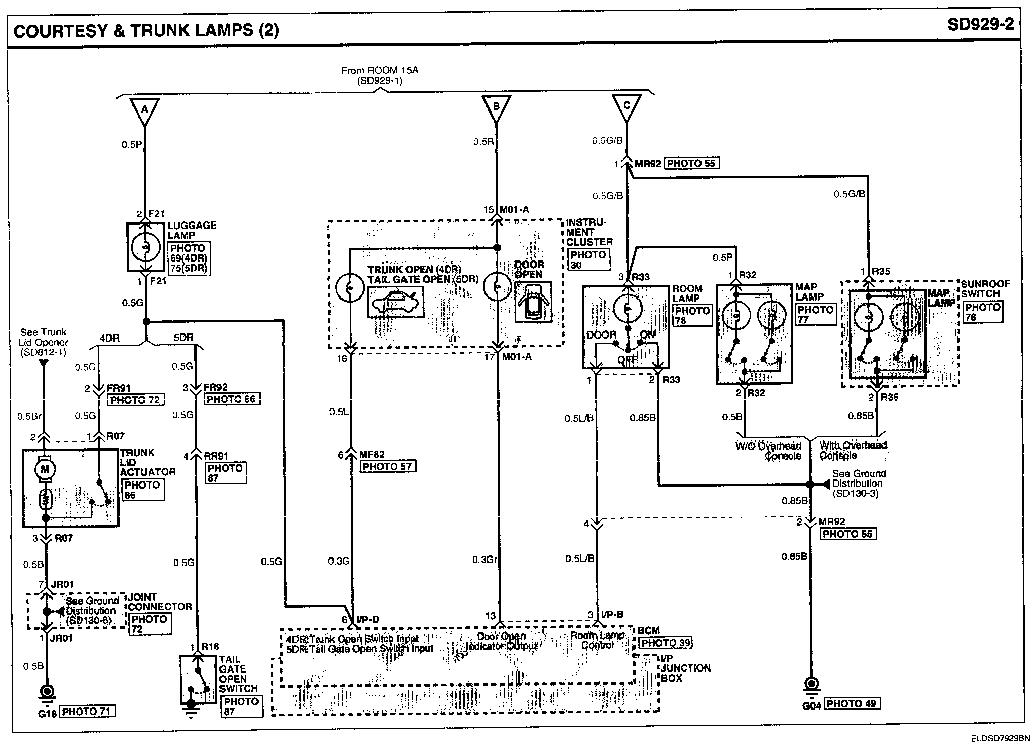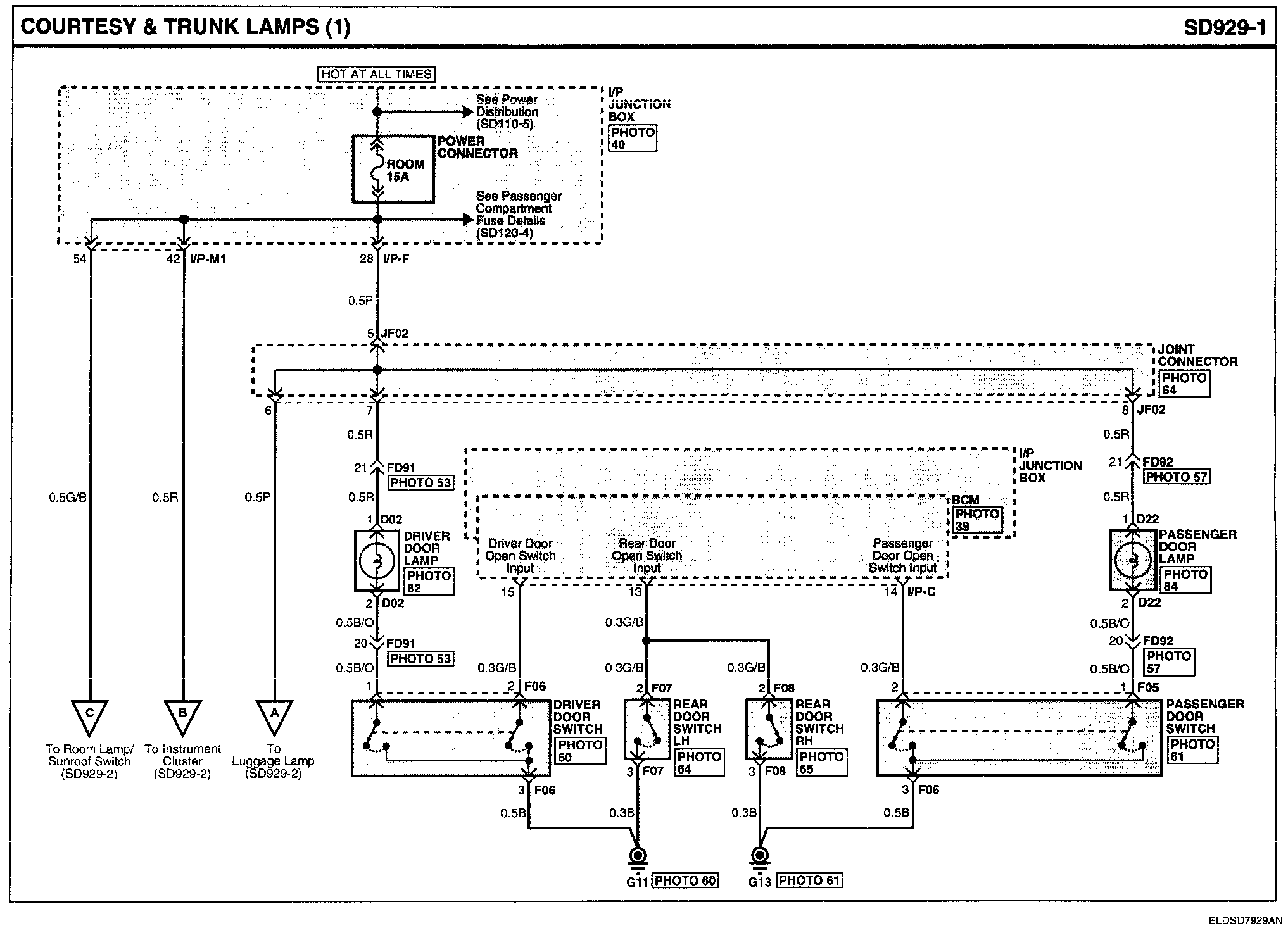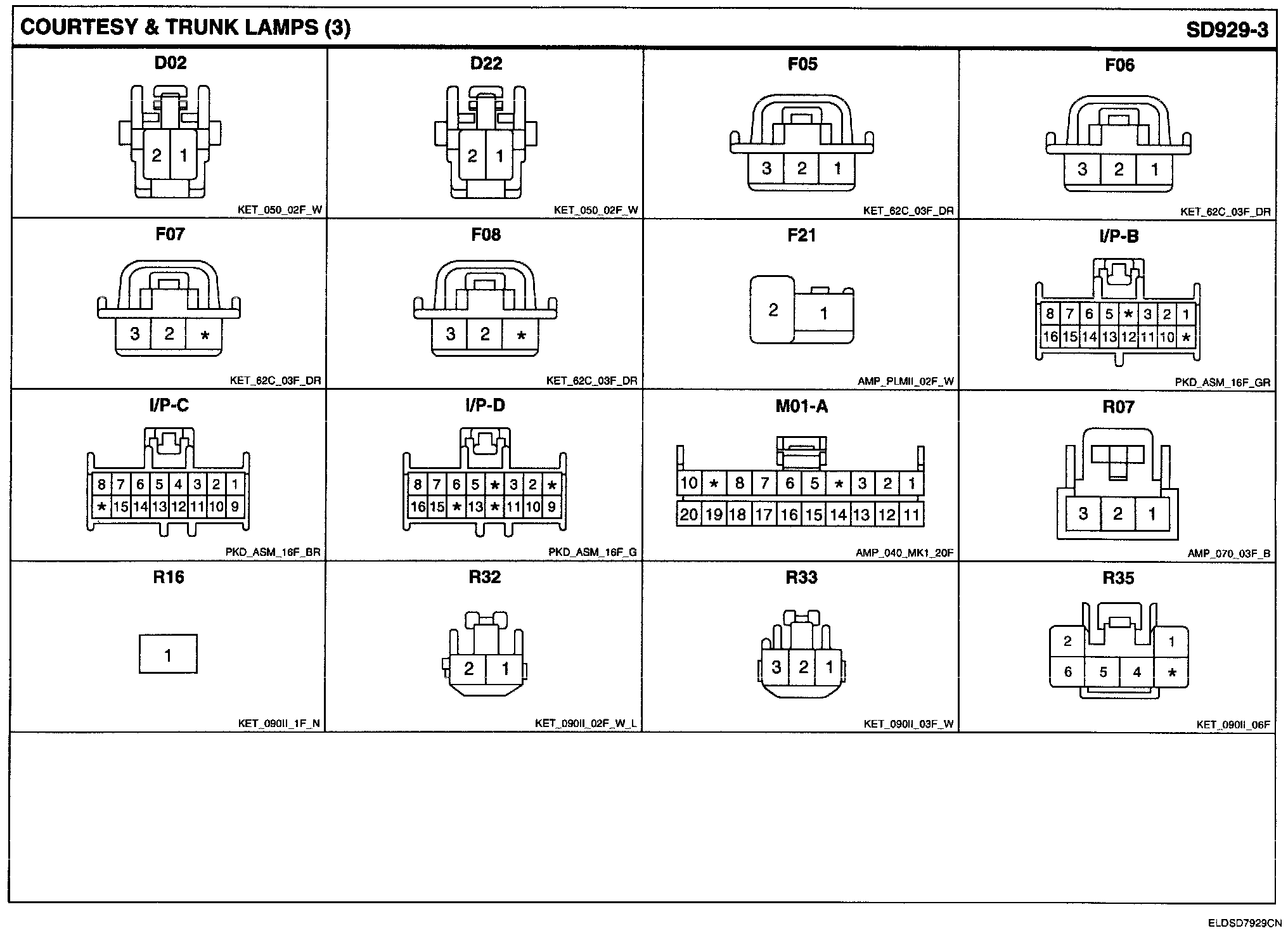 Courtesy & Trunk Lamps Connector Pin Outs: