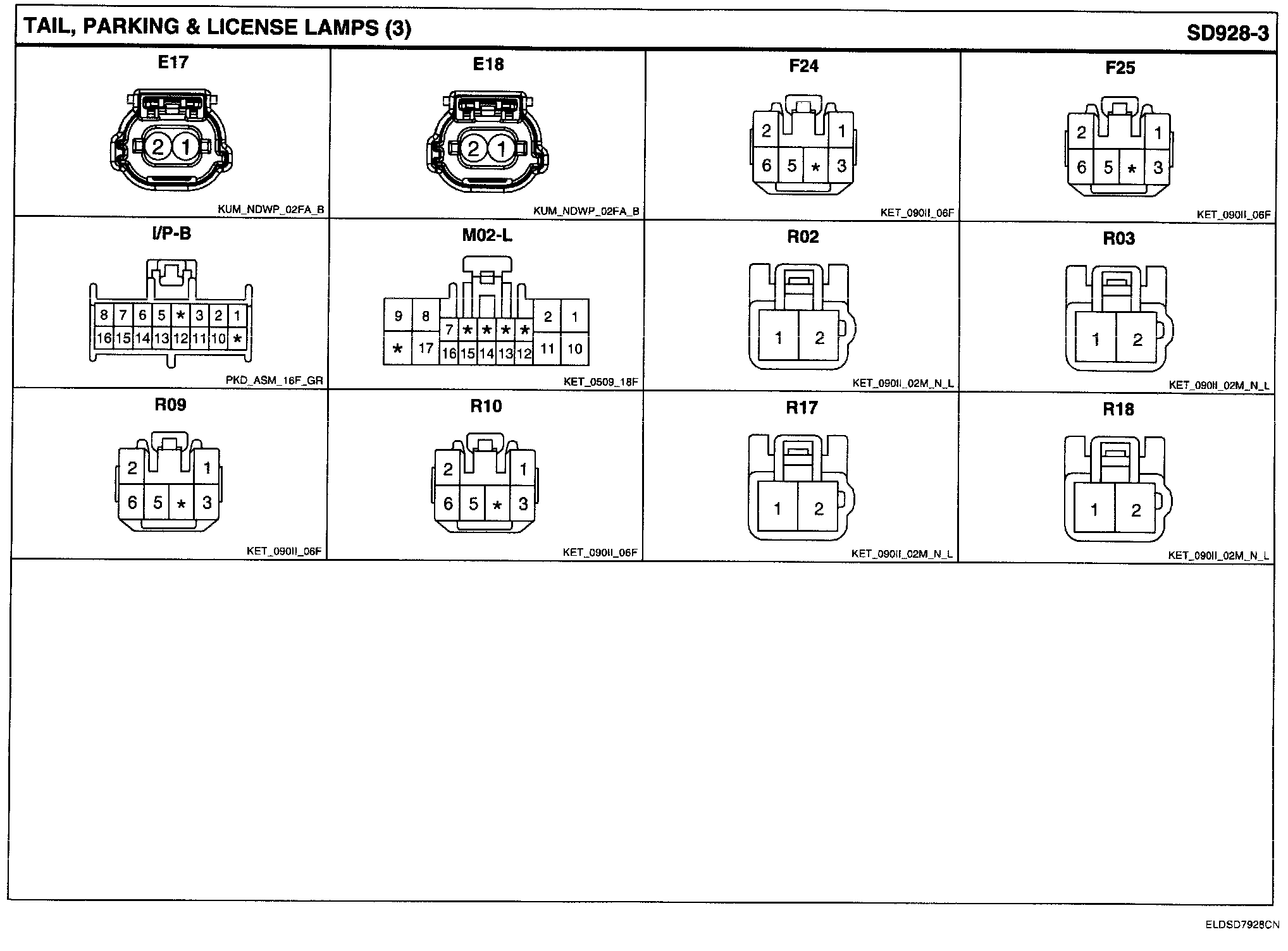 Tail, Parking & License Lamps Connector Pin Outs: