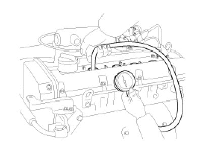(5) If the cylinder compression in 1 or more cylinders is low, pour a small amount of engine oil into the cylinder through the spark plug hole and repeat step (1) through (3) for cylinders with low compression.