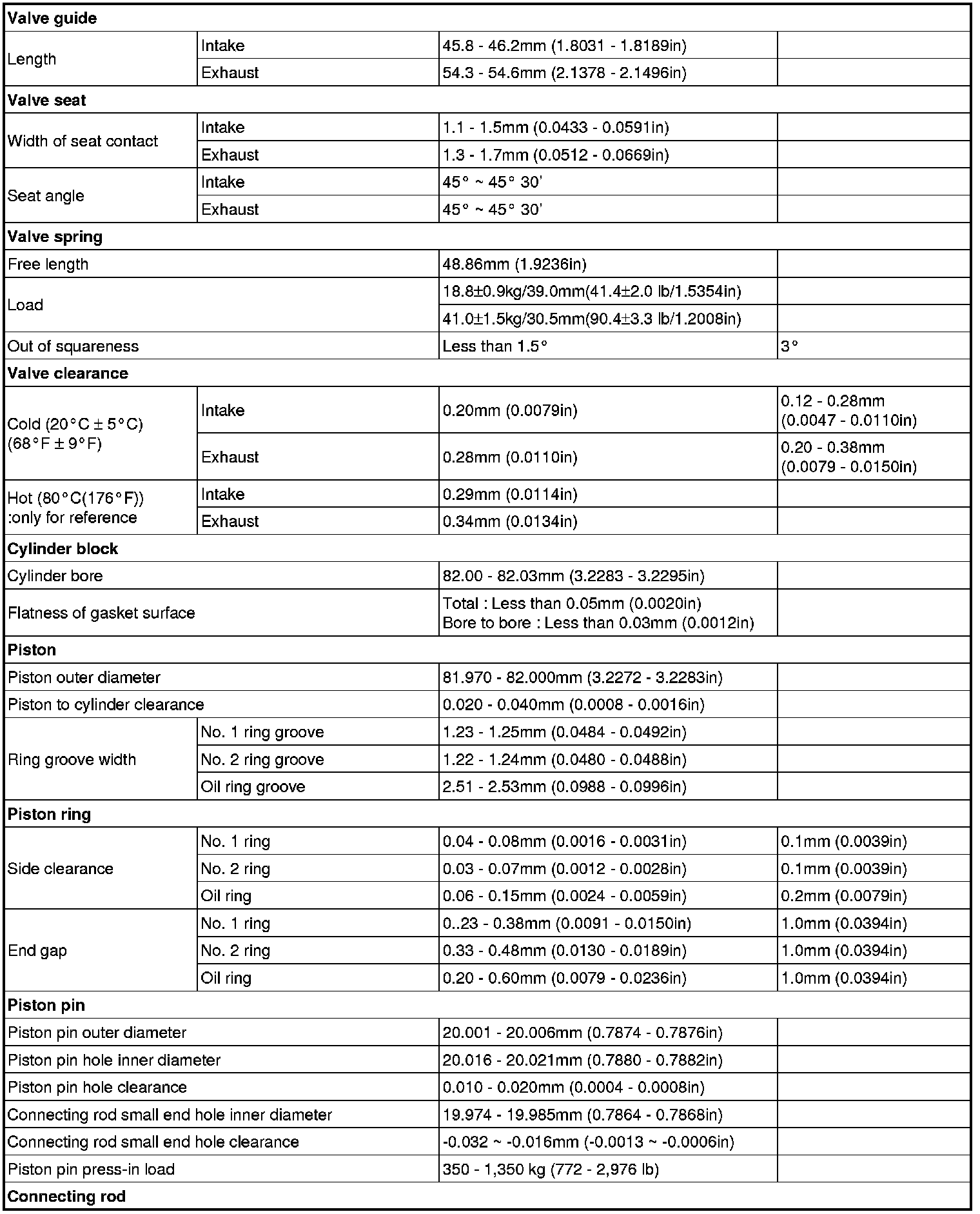 Engine: Specifications: Specifications