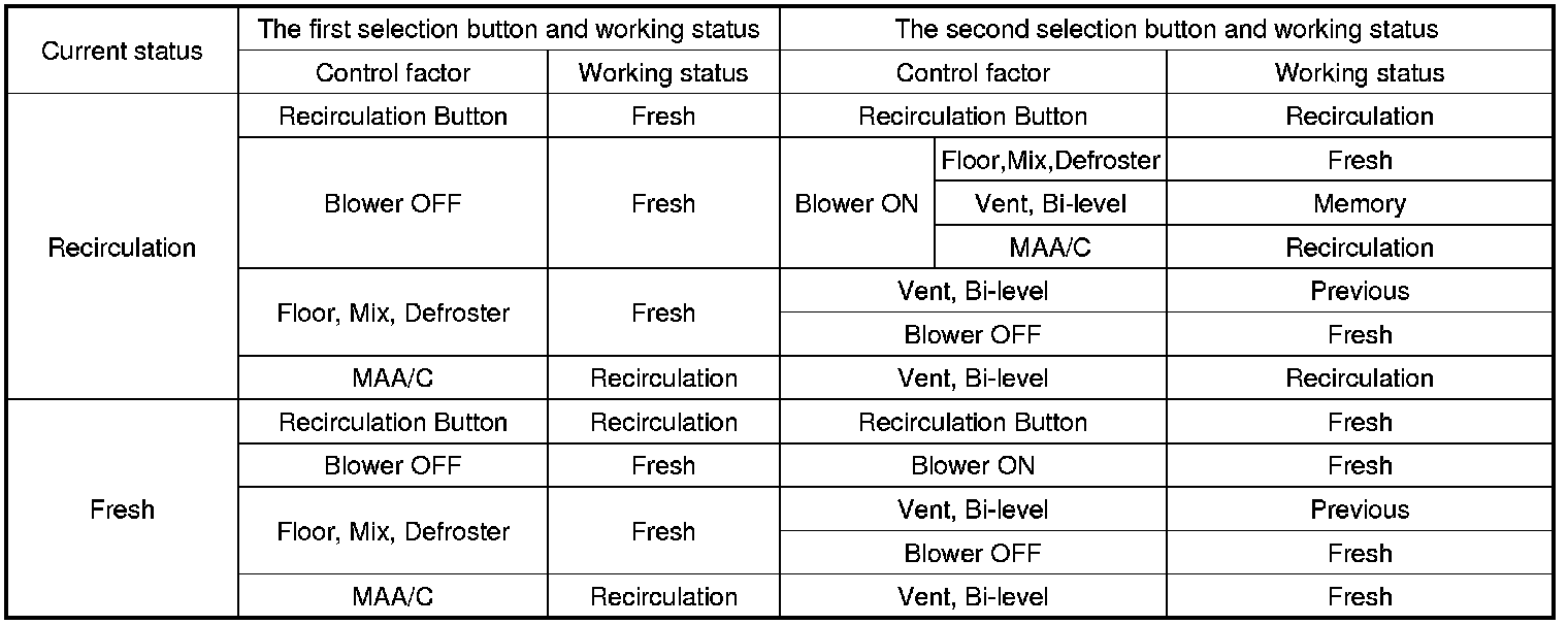 (2) When MAA/C is cancelled, A/C, fresh/recirculation, controlled following the prior status.
